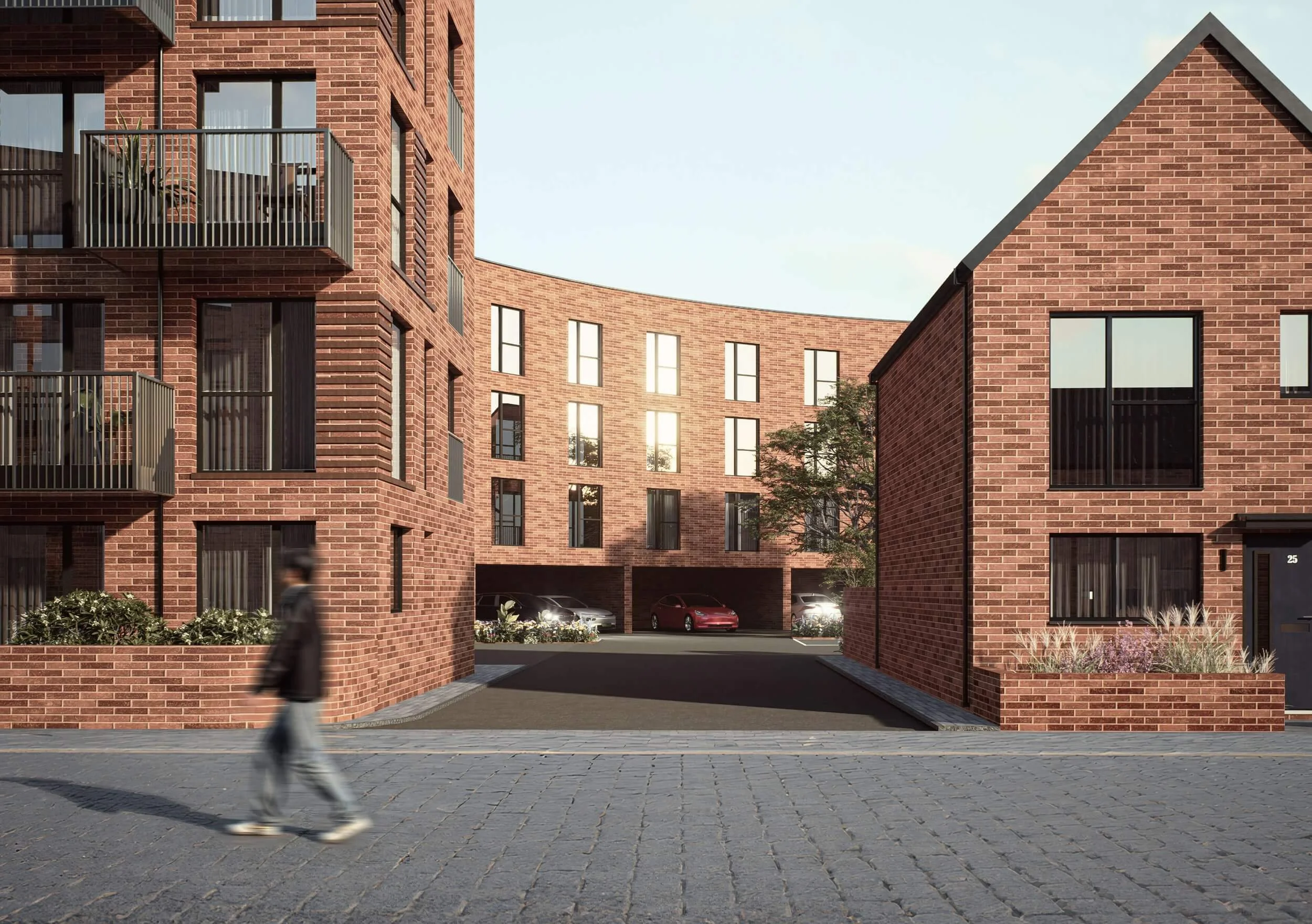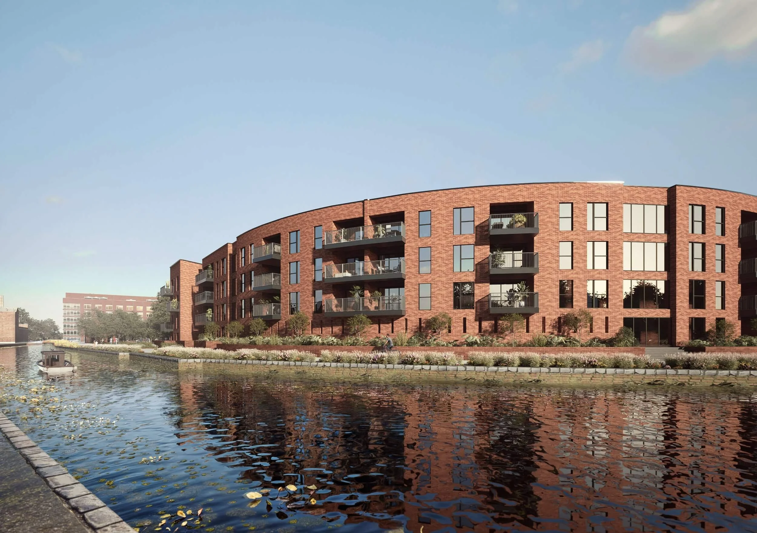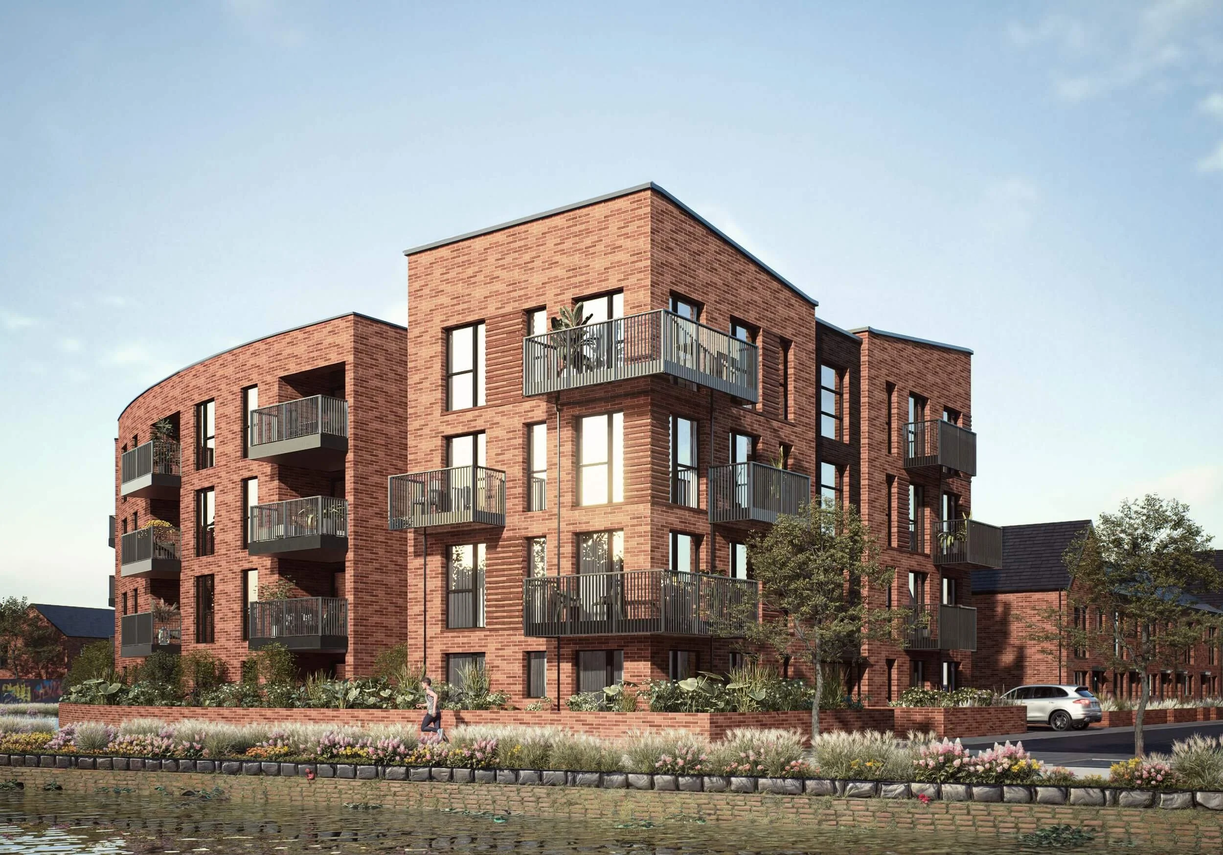 With Leicester’s thriving city centre just a short walk away, the development makes the most of its central location by increasing housing density while also making room for open green spaces along the waterways. The result is a carefully balanced living environment that offers residents both urban convenience and a peaceful connection to nature.
