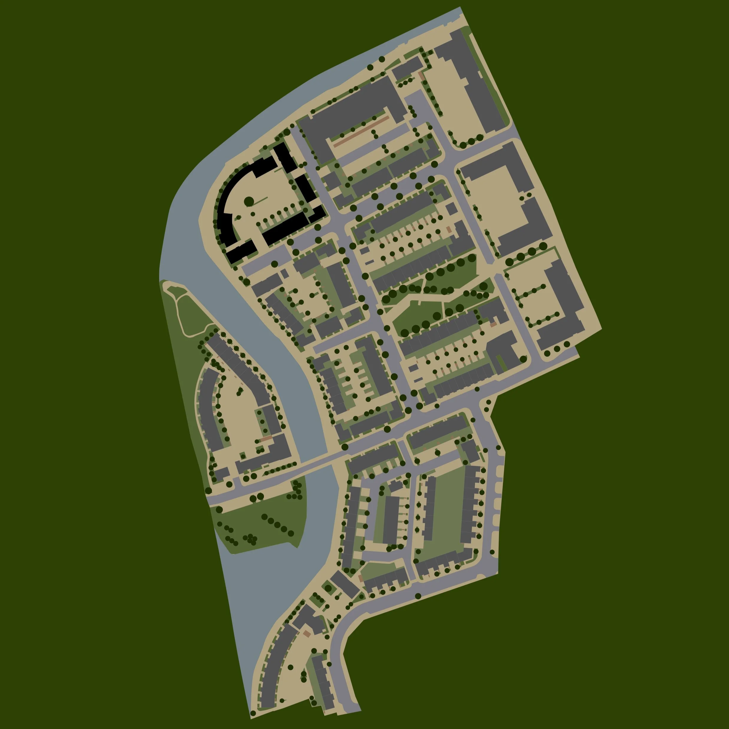 Size: 3 apartment blocks and 9 houses